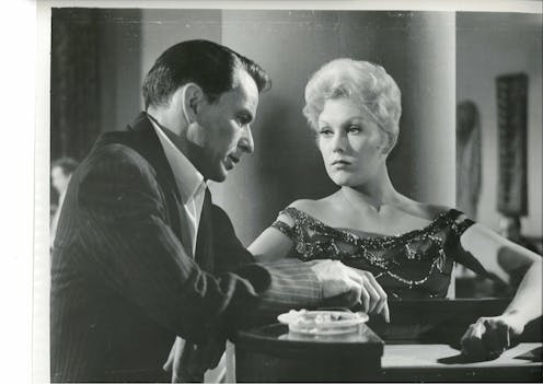 America’s postwar masculine ideal was always more myth than reality, and Sinatra reminds us of this in surprising places. Take the 1954 Warner Bros musical Young at Heart. For the first 30 minutes, it’s packed with optimistic self-assurance, as Doris Day and Gig Young court one another in an idyllic Connecticut setting. But the arrival of Sinatra’s working-class musical arranger – with a name changed from something “a little more Italian” – transforms the film into a feast of noir melodrama.