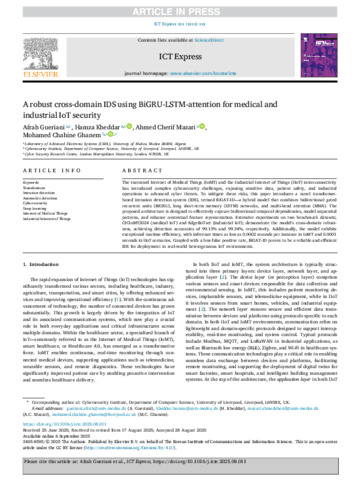 Guerian, Afrah, Kheddar, Hamza, Mazari, Ahmed Cherif and Ghanem, Mohamed Chahine (2025) A robust cross-domain IDS using BiGRU-LSTM-attention for medical and industrial IoT security. ICT Express. pp. 1-10. ISSN 2405-9595