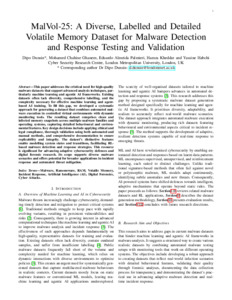 - MalVol-25: a diverse, labelled and detailed volatile memory dataset for malware detection and response testing and validation [paper]. (deposited 22 Sep 2025 10:39) [Currently Displayed]