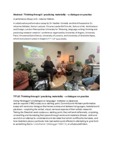 Hällsten, Johanna and Connelly, Heather (2025) Thinking through / practicing materiality – a dialogue on practice. In: Weaving, language, writing: thinking and practicing research-creation, 11-13th June 2025, University of Angers, France.