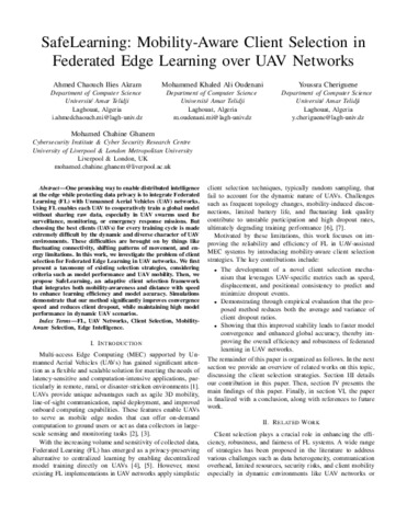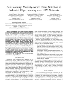 Ahmed Chaouch, Ilies Akram, Oudenani, Mohammed Khaled Ali, Cheriguene, Youssra and Ghanem, Mohamed Chahine (2025) SafeLearning: mobility-aware client selection in federated edge learning over UAV networks. In: 8th IEEE Conference on Cloud and Internet of Things CIoT-2025, 29-31 October 2025, London, UK. (In Press)