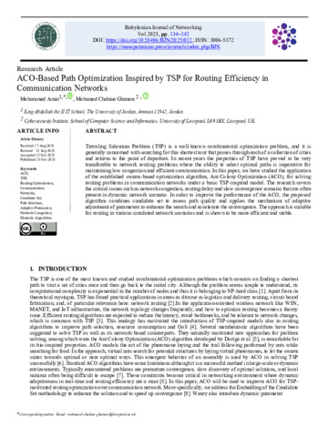 Almaiah, Mohammed Amin and Ghanem, Mohamed Chahine (2025) ACO-based path optimization inspired by TSP for routing efficiency in communication networks. Babylonian Journal of Networking, 2025. pp. 134-142. ISSN 3006-5372