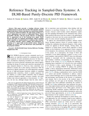 Fuentes, Roberto M., de Oliveira, André M., Gabriel, Gabriela W., Lacerda, Marcio J. and Palma, Jonathan M. (2025) Reference tracking in sampled-data systems: a DLMI-based purely-discrete PID framework. In: IEEE Chilecon 2025, The Chilean Conference on Electrical Electronic Engineering, Informatics and Communications Technology, October 28th to 30th, Valparaiso, Chile.. (In Press)