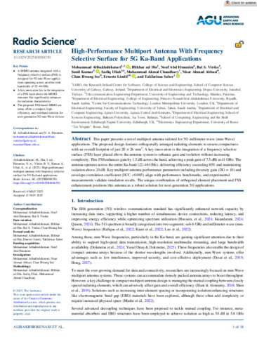 Alibakhshikenari, Mohammad, Din, Iftikhar Ud, Elmunim, Nouf Abd, Virdee, Bal Singh, Kumar, Sunil, Ullah, Sadiq, Chaudhary, Muhammad Akmal, Abbasi, Nisar Ahmad, See, Chan Hwang, Limiti, Ernesto and Saber, Takfarinas (2025) High-performance multiport antenna with frequency selective surface for 5G Ka‐band applications. Radio Science, 60 (11): e2025RS008. pp. 1-18. ISSN 1944-799X