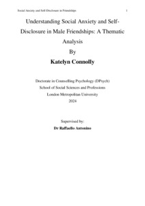 Connolly, Katelyn (2024) Understanding social anxiety and self-disclosure in male friendships: a thematic analysis. Doctoral thesis, London Metropolitan University.