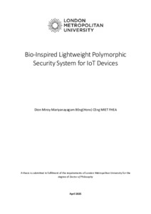 Mariyanayagam, Dion (2025) Bio-inspired lightweight polymorphic security system for IoT devices. Doctoral thesis, London Metropolitan University.