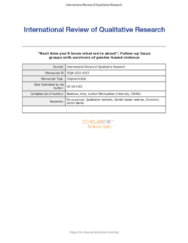 Beddows, Amy (2026) "Next time you’ll know what we're about": follow-up focus groups with survivors of gender-based violence. International Review of Qualitative Research: 1940844725. ISSN 1940-8455