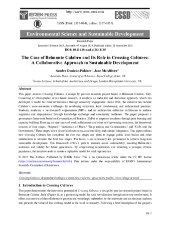 Denicke-Polcher, Sandra and McAllister, Jane (2025) The case of Belmonte Calabro and its role in crossing cultures: a collaborative approach to sustainable development. Environmental Science and Sustainable Development. ISSN 2357-0849, online: 2357-0857