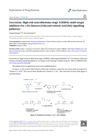 Gerges, Amgad and Canning, Una (2026) Correction: High-risk neuroblastoma stage 4 (NBS4): multi-target inhibitors for c-Src kinases (Csk) and retinoic acid (RA) signalling pathways. Exploration of Drug Science, 4: 1008142. pp. 1-2. ISSN 2836-7677