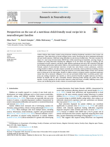 Back, Elisa, Sumpter, Sarah, Mulrooney, Hilda M. and Ranta, Ronald (2026) Perspectives on the use of a nutritious child-friendly meal recipe kit in neurodivergent families. Research in Neurodiversity, 2 (100014). pp. 1-10. ISSN 3050-5798