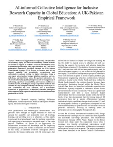 Patel, Preeti, Hassan, Bilal, Amanullah, Yasin, Wasiq, Muhammad Farooq, Rani, Malika, Niaz, Shanawer and Naveed, Khadija (2025) AI-informed collective intelligence for inclusive research capacity in global education: a UK-Pakistan empirical framework. In: EDUCON 2026 - IEEE Global Engineering Education Conference, 27-30 April 2026, Cairo, Egypt. (In Press)