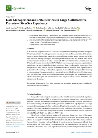 Vassilev, Vassil, Petkov, Georgi, Kraychev, Boris, Haydushki, Stoyan, Nikolov, Stoyan, Sowinski-Mydlarz, Viktor, Kiyamousavi, Ensiye, Shivarov, Nikolay and Stoilova, Denitsa (2026) Data management and data services in large collaborative projects - DiverSea experience. Algorithms, 19(2) (154). pp. 1-18. ISSN 1999-4893