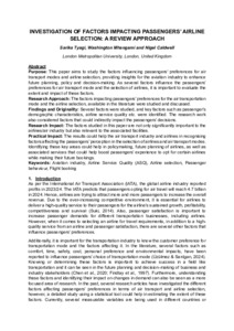 Research Approach: The factors impacting passengers’ preferences for the air transportation mode and the airline selection, available in the literature were studied and discussed.