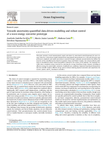 Silva, Josefredo G., Lacerda, Marcio J., Costa, Matheus and Nepomuceno, Erivelton (2026) Towards uncertainty-quantified data-driven modelling and robust control of a wave energy converter prototype. Ocean Engineering, 354(1) (124745). pp. 1-12. ISSN 1873-5258