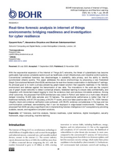 Kuku, Oyeyemi, Chrysikos, Alexandros and Salekzamankhani, Shahram (2025) Real-time forensic analysis in internet of things environments: bridging readiness and investigation for cyber resilience. BOHR International Journal of Internet of things, Artificial Intelligence and Machine Learning, 4 (1). pp. 29-38. ISSN 2583-5521
