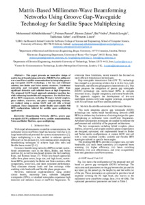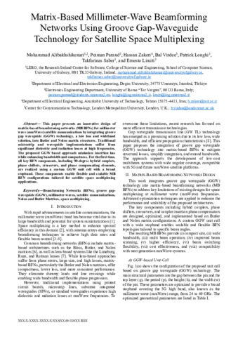 Alibakhshikenari, Mohammad, Parand, Peiman, Zakeri, Hassan, Virdee, Bal Singh, Longhi, Patrick, Saber, Takfarinas and Limiti, Ernesto (2026) Matrix-based millimeter-wave beamforming networks using groove gap-waveguide technology for satellite space multiplexing. In: 2025 IEEE Conference on Antenna Measurements and Applications (CAMA), 18-20 November 2025, Antibes Juan-les-Pins, France.