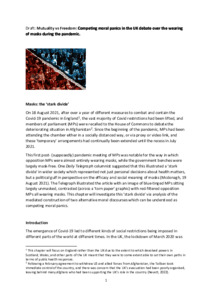 Throughout these changes of policy, a debate developed in which mask-wearing became, in part at least, linked to issues of moral and social responsibility. It has been argued that the face mask “is at once such a shared cultural symbol and yet so physically intimate [which] allows its wearer to channel, materialise and signal co-operation, fear, anger or dissent.” (Barratt, 2020). In this chapter, this debate will be analysed as an illustration of the possibility of competing moral panics, in which the language choices made in public discourse (largely in samples of newspaper articles) shape the issue of the moral risk of (not) wearing a mask during the pandemic.