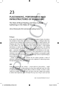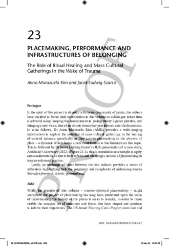 Kim, Anna Marazuela and Scarso, Jacek Ludwig (2024) Placemaking, performance and infrastructures of belonging: the role of ritual healing and mass cultural gatherings in the wake of trauma. In: Trauma Informed Placemaking. Routledge, Abingdon, pp. 263-275. ISBN 9781032443102