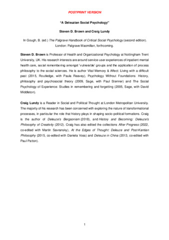 Brown and Lundy on A Deleuzian Social Psychology - POSTPRINT.pdf - Accepted Version