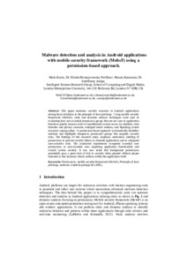 Kizito, Mark, Homayounvala, Elaheh, Kazemian, Hassan and Araujo, Istteffanny Isloure (2025) Malware detection and analysis in Android applications with mobile security framework (MobsF) using a permission-based approach. In: 12th International Conference on Frontiers of Intelligent Computing: Theory and Applications (FICTA-2024), 6-7 June 2024, London Metropolitan University, London (UK) / Online.