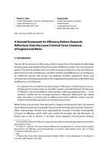 This article presents a theoretical framework to aid researchers in navigating the efficiency-oriented criminal justice reform literature. The current article centres on the influential English and Welsh lower criminal court efficiency reform-oriented reports of Le Vay (1989), Auld (2001) and Leveson (2015). In doing so, this work demonstrates that, historically, the literature has provided accounts of efficiency that have often been ambiguous and conflictual. As a result, it is often difficult to understand what efficiency advocates are advocating for and what efficiency critics are critical of. In view of these influential reports and other more contemporary supplementary works, this article critically discusses the theoretical contributions of Chase (1938), Packer (1968) and MacDonald (2008). The result is that the present work provides readers with a revised typological research framework for navigating the often-confusing efficiency-oriented criminal justice literature. The framework organises efficiency